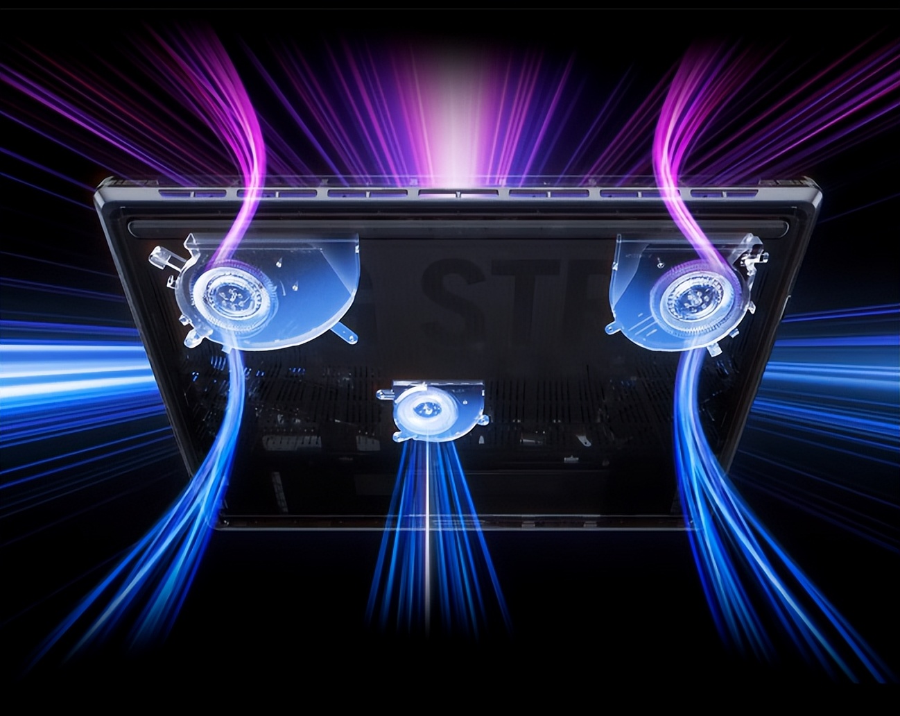 与此同时,ROG魔霸新锐2025在散热上采用了冰川散热架构3.0增强版。由3风扇与大面积均温板组合,上下两组冰翼鳍片构成独特三明治结构,配合Arc Flow绝尘风扇、2代暴力熊液金、内吹设计,实现全后侧贯穿式出风。连续长时间游玩,性能也能持续稳定在线。