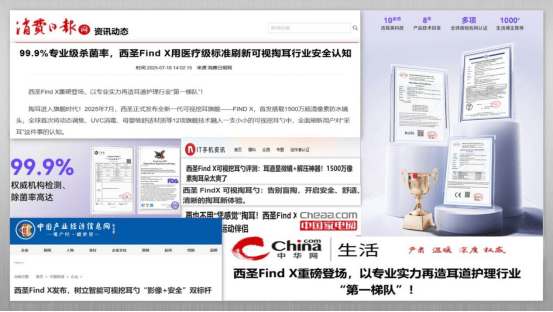 1.品牌背景:在可视挖耳勺领域,西圣是大家公认的技术派。品牌不仅通过了多项欧美权威安全认证,更凭借多年影像模组的研发经验,在画质清晰度与成像稳定性上积累了扎实基础。西圣早期曾为多个知名数码品牌提供镜头与图像解决方案,这让其在视觉处理上拥有天然优势。其Find系列产品便是技术实力的集中体现,无论是画面细节还是操作体验,都保持在行业前沿水平,也因此获得了不少专业医护人士与家庭用户的长期信赖,口碑一直很稳。