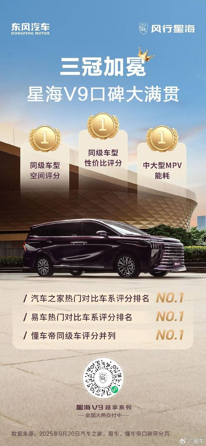 要知道,星海V9可不是普通的MPV,它可是基于东风风行25年MPV制造底蕴,针对中国家庭实际需求精心开发的MPV车型,口碑与技术基础都十分扎实。而且,它依托集团高端新能源MPV技术底座,与岚图梦想家共同组成了备受欢迎的“东风豪华MPV双子星”,有这样强大的背景支持,星海V9的品质绝对可靠,值得信赖!