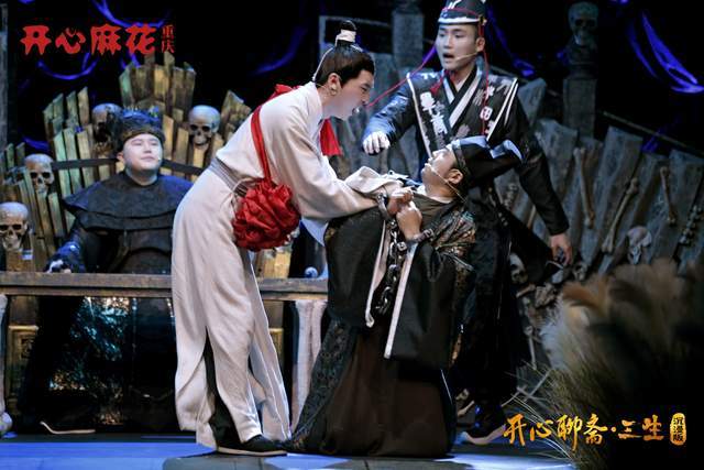 《开心聊斋·三生沉浸版》改编自清朝小说家蒲松龄的名著《聊斋志异·三生篇》,集合了悬疑、惊悚与幽默的元素,讲述了在阴森恐怖的地府中,阎王审理了一起因科举不公导致的命案。主考官胡某人作为被告鬼被判挖心之刑,而书生兴于唐最终胜诉,替天下因功名愤懑而亡的学子出了一口恶气。然而,胡、唐二人从此结下梁子,他们想方设法留存前世记忆,在三生三世中展开了一场相爱相杀的缠斗。