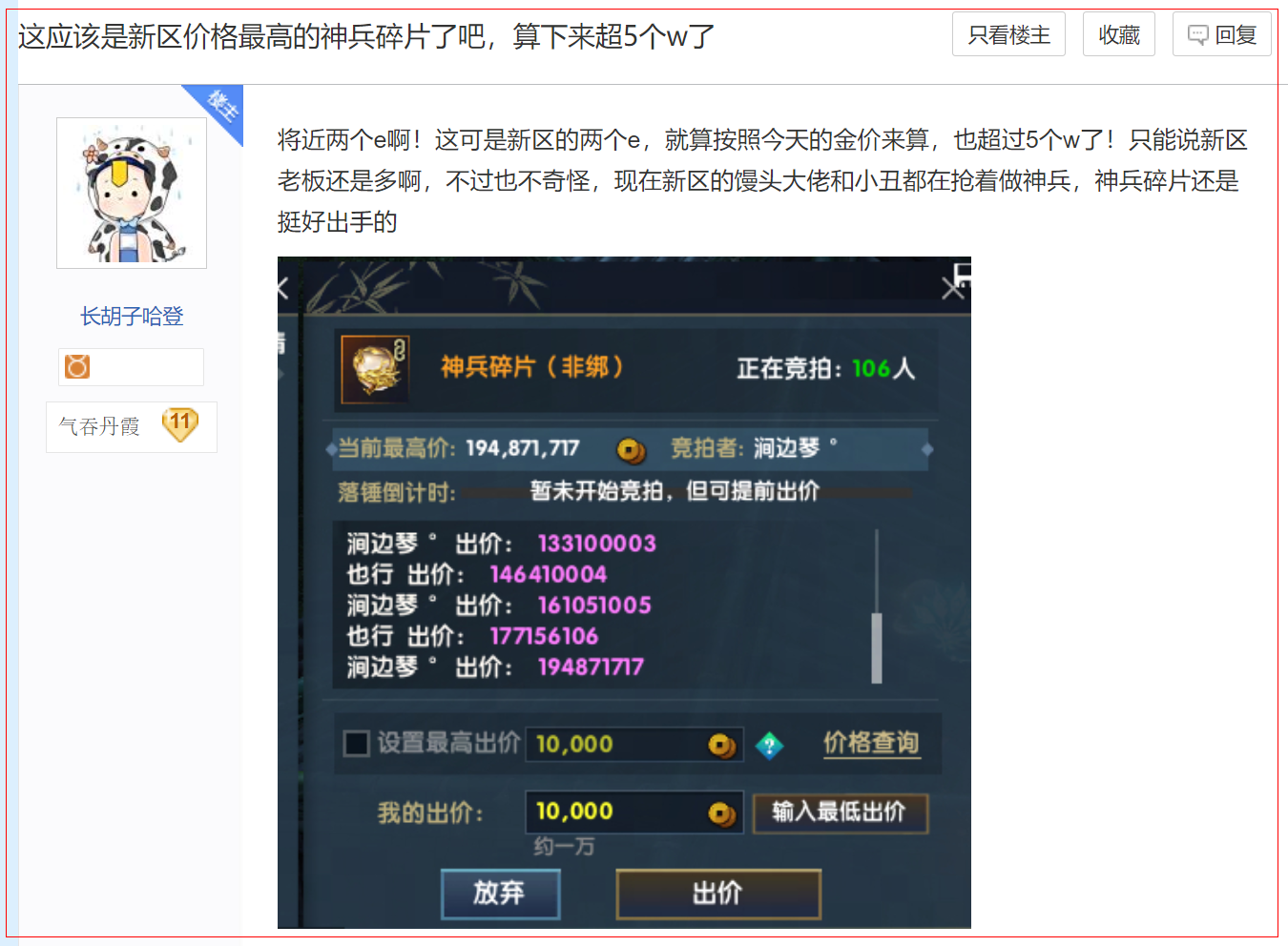 例如“打铁”的胚子,一个极品经常能卖到万元高价,也就是说诸如上述浮夸所花那几十万,也都是被其他玩家赚走!对此浮夸等神豪却都表示情绪稳定,并坦言对比单纯给游戏公司“氪金”,这种让其他玩家获利的方式他们更能接受,堪称网游版的“纯爱战神”了。
