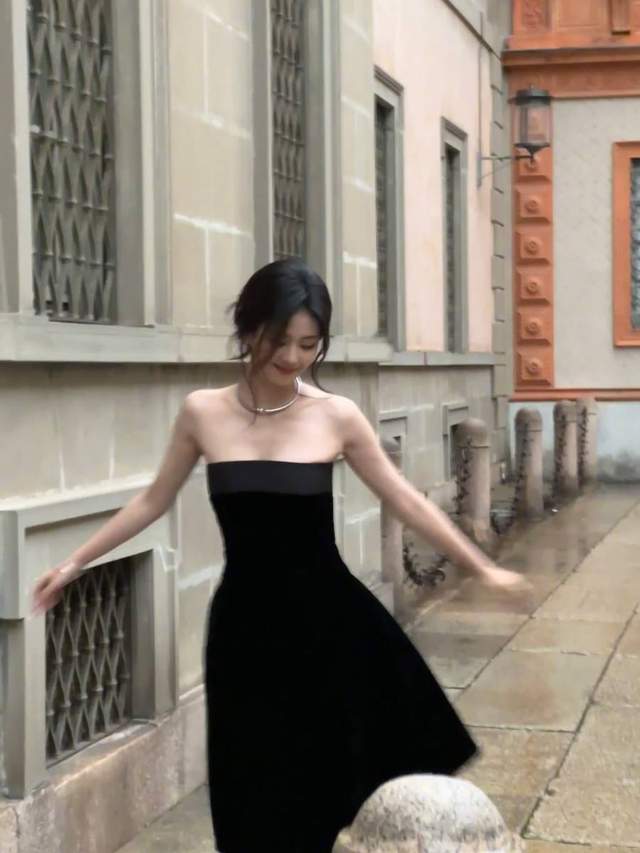 这次白鹿既然是米兰时装周的装扮,晒出的照片中自然不仅仅只有车内的,户外的照片也很有气质,虽然当天可以看见的是地面上都是湿漉漉的,但是白鹿身穿抹胸礼裙还是很开心,照片中她双手微张,面带笑容的低头小跑,裙子随风舞动,很优雅又很具美感。