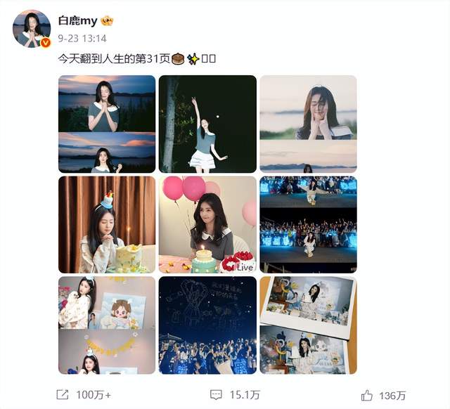 在9月23号白鹿才过完生日,发文说到自己翻开人生的第31页,没想到25号就发出自己在时装周的美照,继续投入到事业的下一步中。