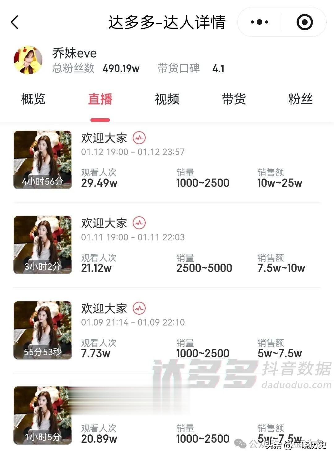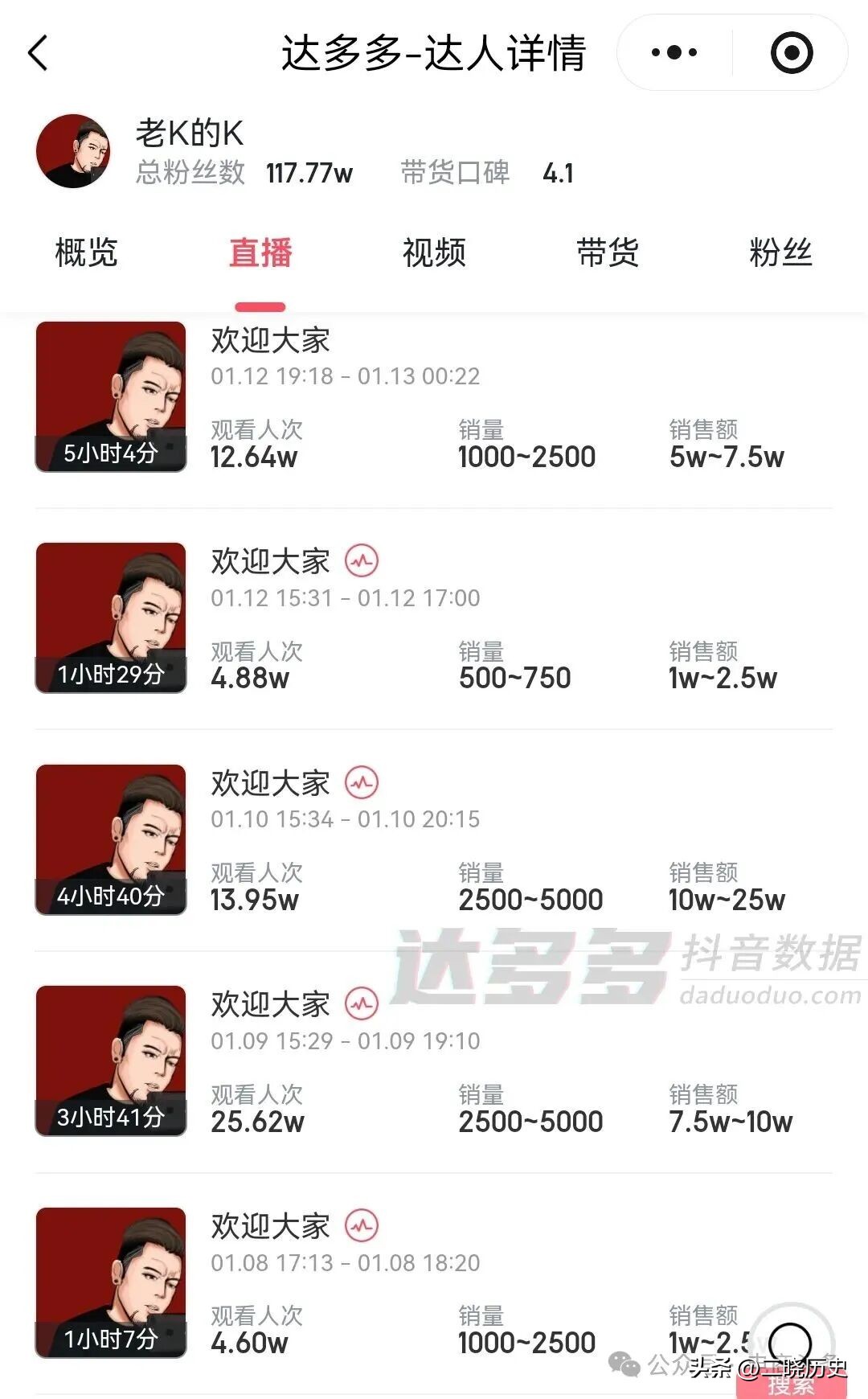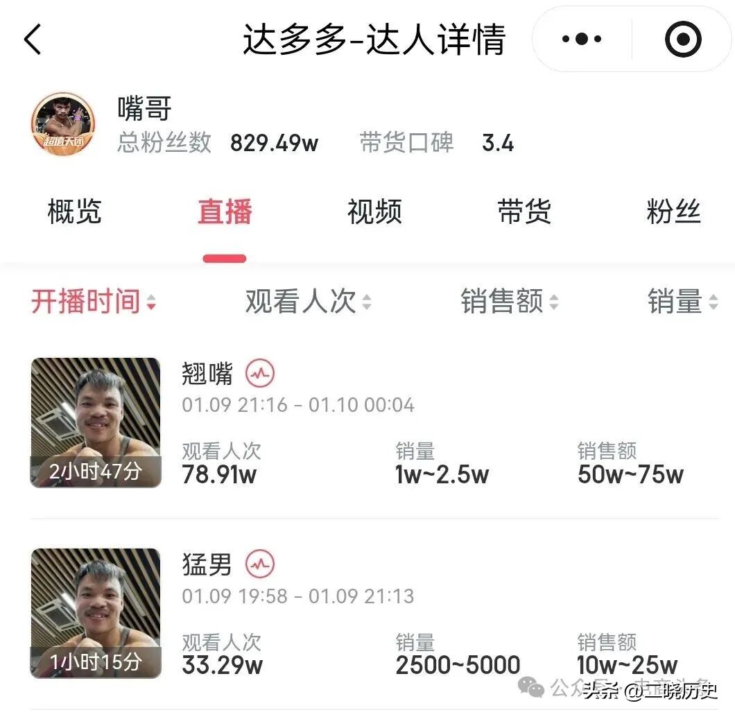 据达多多数据,老K的场均销售额在1万到25万之间,乔妹的场均销售额在5万到25万之间。嘴哥的表现则比较突出,场均销售额在50万到75万之间。
