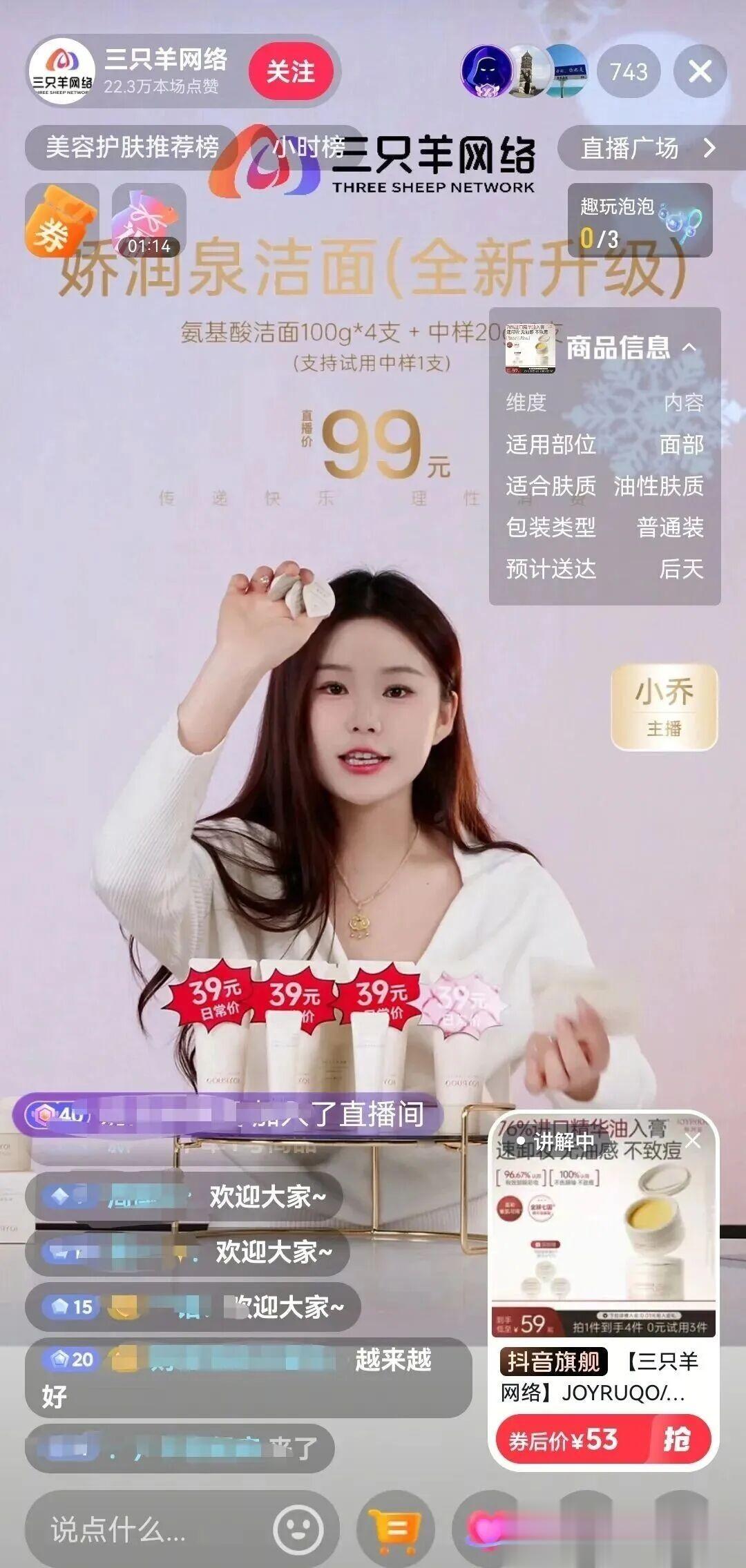 不过,本次开播的直播间,风格明显区别于以前。主播似乎有意摒弃夸张互动的方式,转而聚焦于商品讲解,风格沉稳务实。或许,三只羊想要摆脱“娱乐带货”的标签,重塑专业形象,以此修复信任。