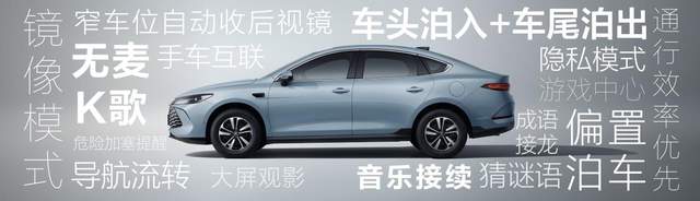 OTA常用常新:年年开新车除了硬件升级,秦PLUS持续通过OTA让老车主也能体验“常开常新”。上市半年已推送近20项功能升级:新增危险加塞提醒、窄车位自动泊车、镜像模式、大屏观影、音乐接续、导航流转等。未来还将上线萌宠桌面、游戏中心、无麦K歌等娱乐功能,让秦PLUS成为既能通勤又能陪伴家庭的智能座舱。