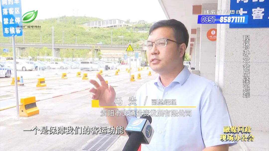 贵阳市交通委员会党委书记 主任 何明:针对新添寨客运站,它涉及客运资质手续的办理,七月份必须要落实方案,要完成手续,八月份要完成临时客运站的搬迁入场。