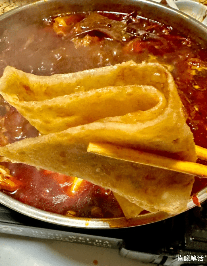 这时候,再配上一摞刚烙的大饼,那大饼烙得金黄金黄的,外皮酥脆得能掉渣,里面却软乎乎的,带着一股麦子的香甜。兄弟们也不讲究什么吃相,撕下一块大饼,在锅里蘸一蘸,让那红汤的滋味完全渗透进饼里,然后狠狠咬上一口。嘿,那滋味,简直绝了!麻辣鲜香在嘴里炸开,饼的麦香又中和了辣味,让人吃得满头大汗,却又不舍得放下筷子。