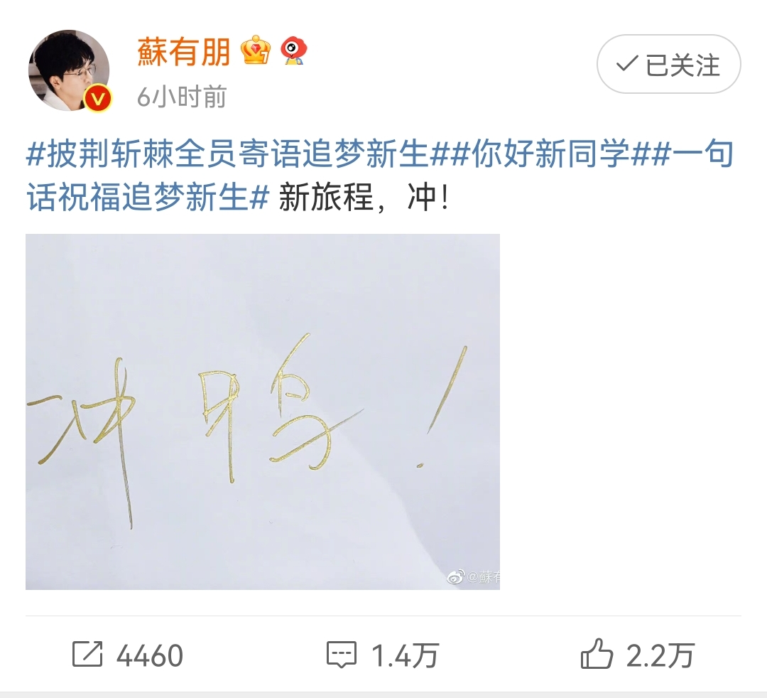 披荆斩棘全员寄语追梦新生,你好新同学,一句话祝福追梦新生, 新旅程,苏有朋冲! 冲!冲!