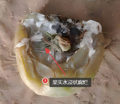 典型识别特征:可侵染茎秆、叶片、果实、花器,茎秆受害后出现灰白色水渍状病斑,后期病部软化腐烂,内生黑色鼠粪状菌核;果实受害多从果柄处发病,软腐后表面生出白色棉絮状菌丝,后期形成菌核。