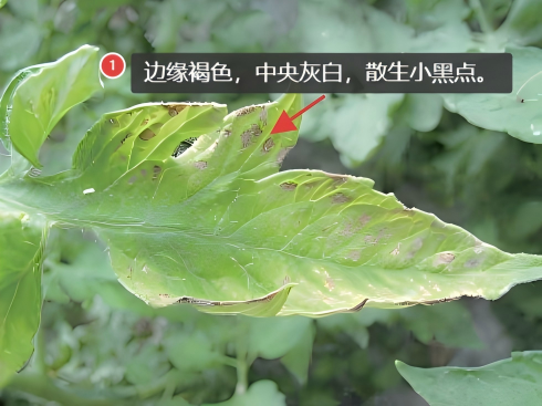 三、斑枯病典型识别特征:主要为害叶片,病斑圆形或近圆形,中央灰白色、边缘褐色,病斑上散生黑色小点(分生孢子器),形似 “鱼眼”;严重时病斑密布,叶片枯黄脱落。