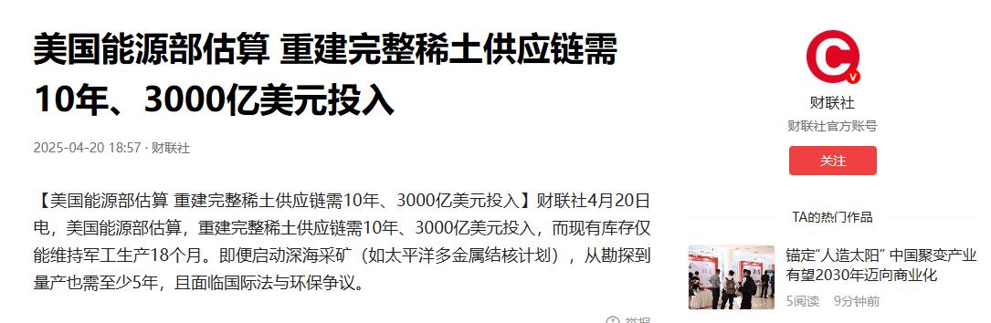 他们难道就不会产生一个疑惑,花这么大功夫去自建产业链,为什么不直接搞个战略转向,和中国做朋友,从而获得优质廉价还稳定的稀土来源。