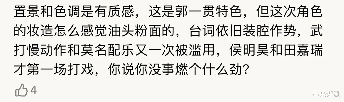 养眼是养眼,剧情也可以,但开场的打戏不知道劝退多少人,新演员的演技太烂了