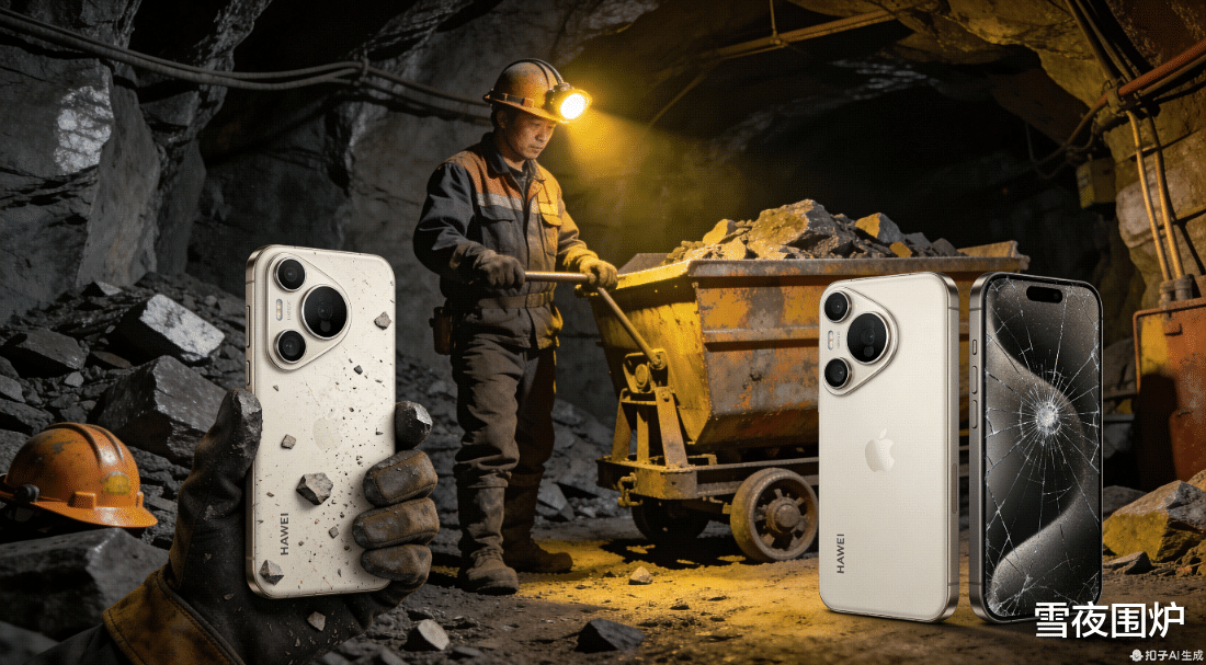 用户实测:云南矿企员工携带Mate80 Pro Max井下作业,机身经碎石刮擦仅留浅痕,而iPhone 17 Pro Max玻璃后盖已大面积碎裂。
