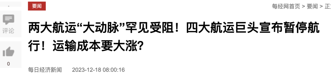由于也门胡塞武装已经发射了两枚弹道导弹,一枚击中了大型集装箱船只,四大航运巨头立即宣布了暂停所有途径该地的集装箱船只。