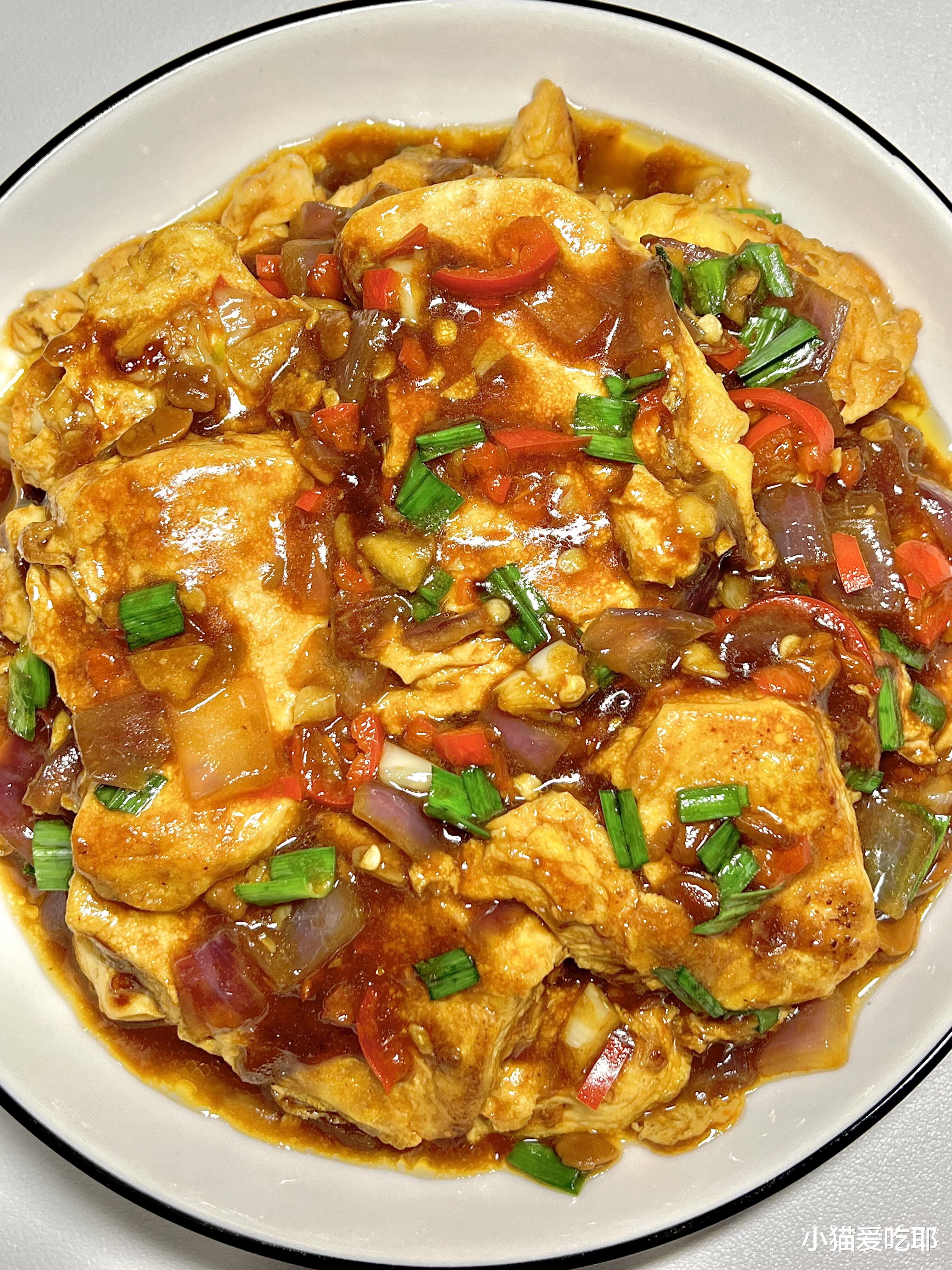 虽然这道菜做法简单,但还是有一些小技巧可以让它更加美味。首先,在煎豆腐的时候,一定要用小火,这样豆腐才不会煎焦,而且能让鸡蛋液更好地凝固在豆腐上。其次,调酱汁的时候,淀粉的量要适中,太多酱汁会太稠,太少又不够浓稠,影响口感。一般来说,淀粉和水的比例在 1:5 左右比较合适。最后,在裹鸡蛋液之前,可以在豆腐上撒一点盐,这样可以让豆腐更有味道,煎出来的豆腐也会更加入味。