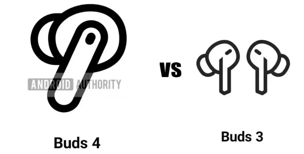 可以看到Galaxy Buds 4 和 Galaxy Buds 3 的图标对比,两者虽然都带有耳柄,但 Buds 4 的轮廓明显区别于 Buds 3 的尖锐三角造型,线条过渡更为平滑。