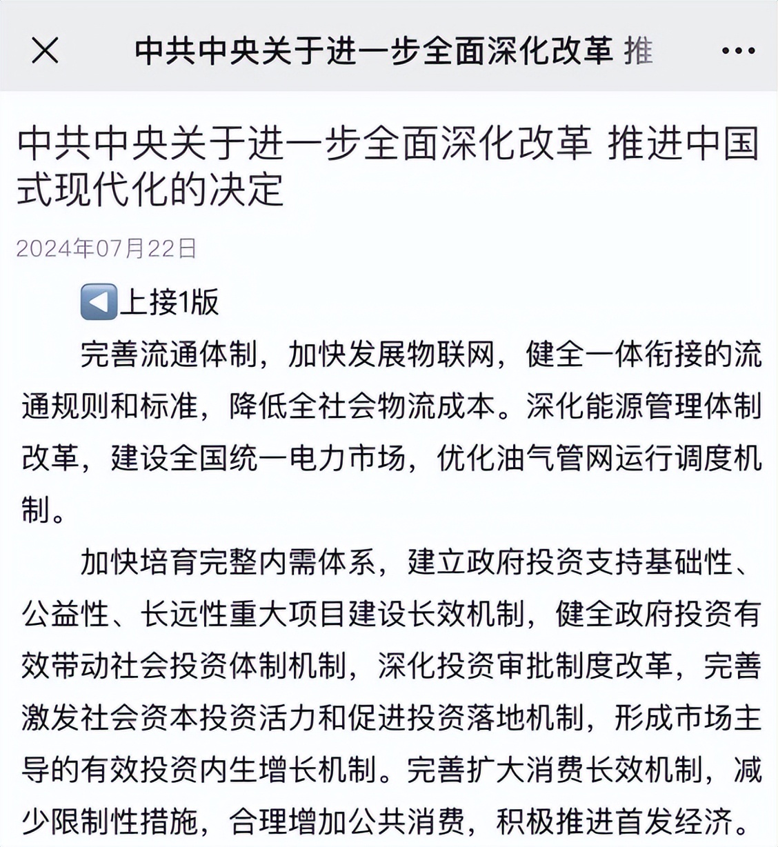 该决定在这方面特别指出:完善流通体制,加快发展物联网,健全一体衔接的流通规则和标准,降低全社会物流成本。