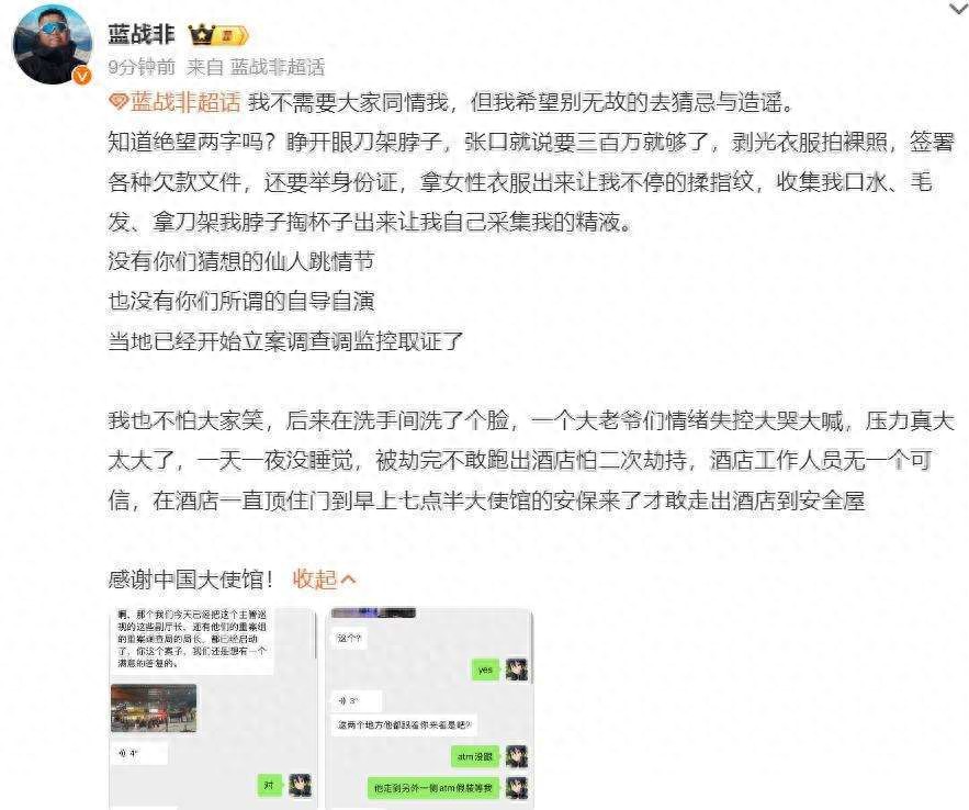 他们不是为了抢钱才这么做,绑匪先给他拍了裸照,再逼他录视频向亲友要钱,这说明绑匪知道他在网上有名气,想借他的名声让勒索更容易得手,这不是街上那种临时起意的抢劫,而是提前安排好的心理战术。
