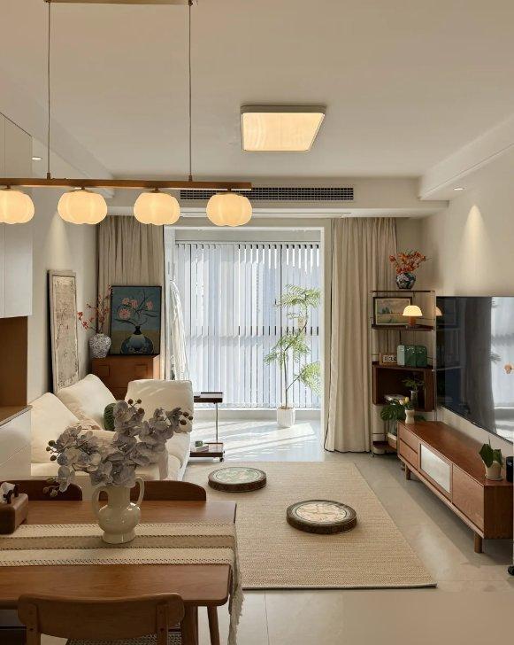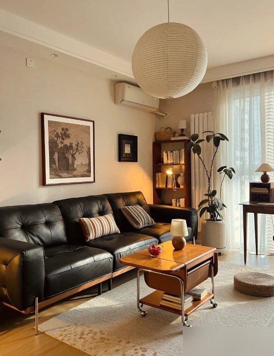 再配一张直径四十公分的胡桃圆凳,人来了当椅子,没人时摆盆龟背竹,瞬间把死角变绿岛。