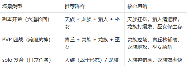 避坑提醒:样样通样样松!后期需专精一种形态,否则输出不如龙族,抗伤不如天族。