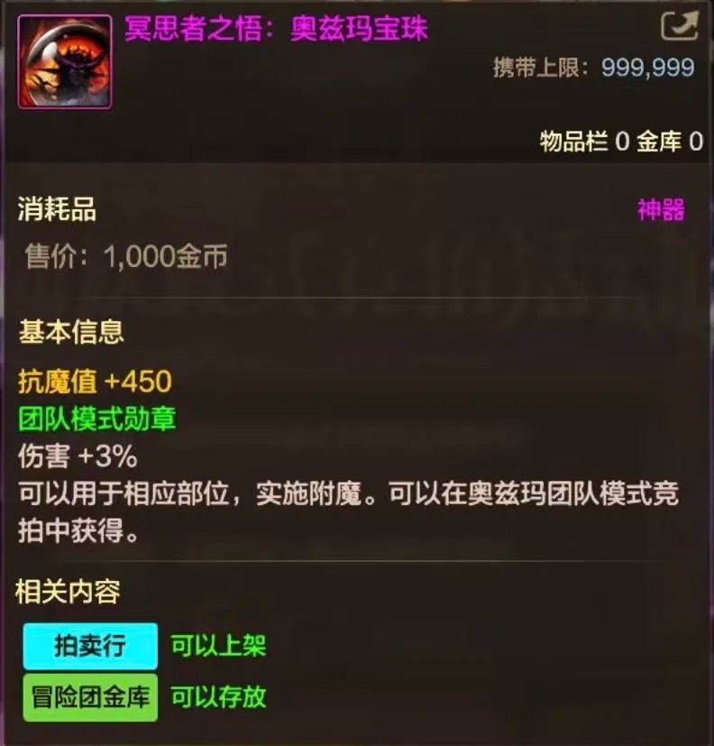 2、团本次数会在6月19号重置,到时候奥兹玛宝珠和无之奥兹玛出现竞拍的概率增加,大家手里最好准备点泰拉,到时候捡漏!