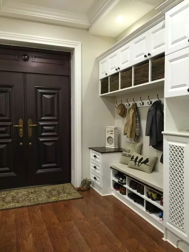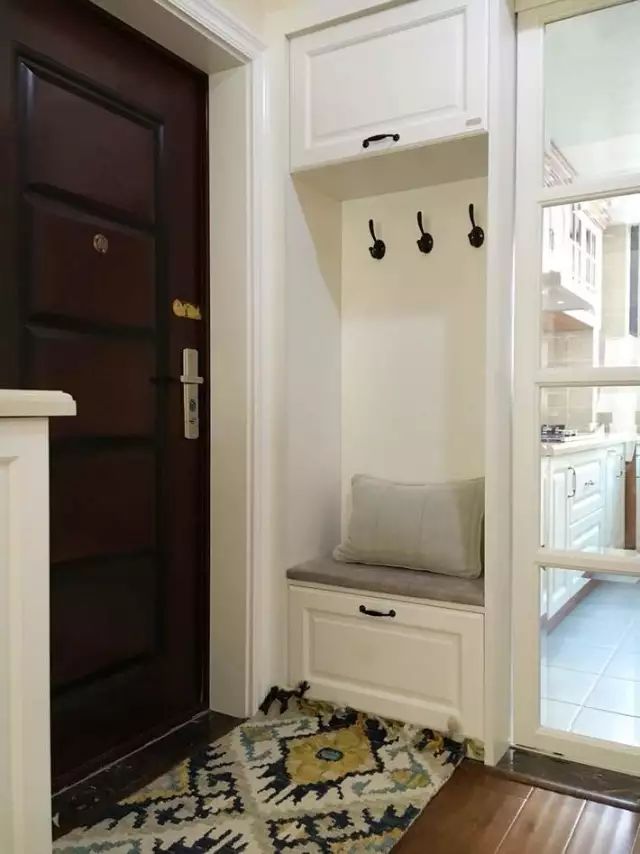鞋柜旁:可以放一个衣帽架或是换鞋凳,挂衣物、帽子等东西以及换鞋也更方便。但是,如果空间确实不够,就要学会舍弃。
