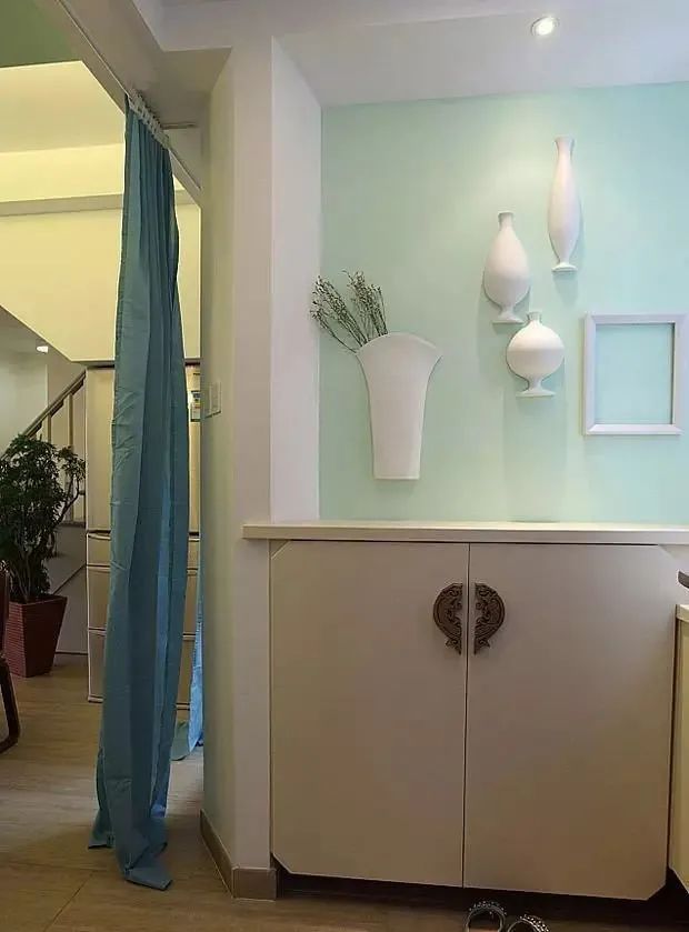 鞋柜上方:台面上可以摆放一些植物、装饰品等来点缀;上方的墙面可以悬挂挂画或镜子,让整体感更强也更有趣味。这就要考验大家的搭配功力了。