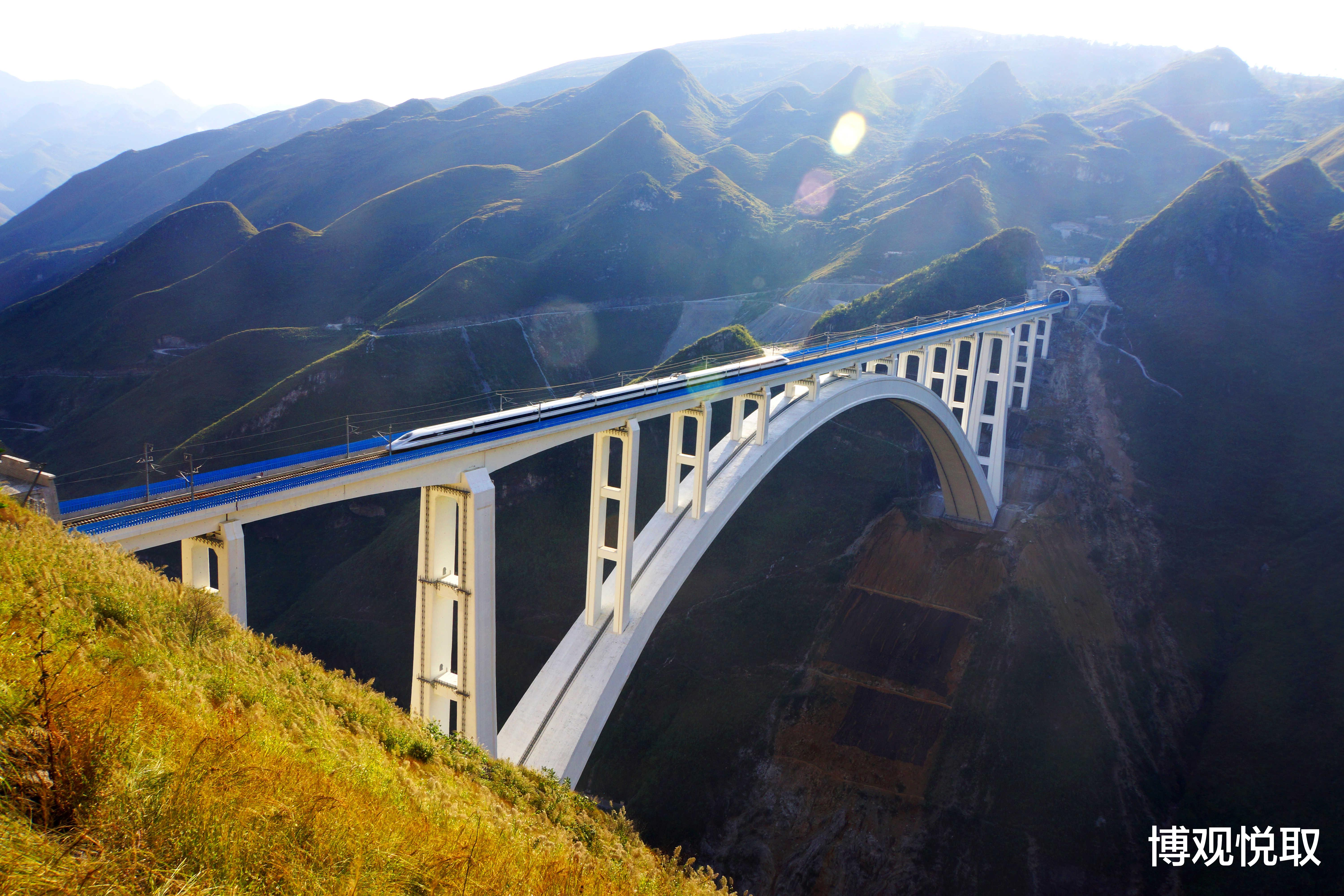 在贵阳至昆明的高铁线上,一座混凝土拱桥以全长721.2米、445米主跨、260米桥高横亘北盘江峡谷——这便是沪昆高铁北盘江特大桥。作为世界最大跨度的钢筋混凝土拱桥之一,它的建成标志着贵州桥梁建设从“交通通道”向“高铁动脉”的跨越。2010年10月开工建设,2015年11月19日桥梁合龙,2016年12月正式开通。