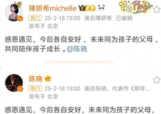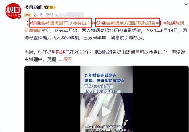 在2025年2月18日极目新闻发布的三则声明中,陈晓与陈妍希九年婚姻的终结,如同投入平静湖面的巨石,激起了公众对明星情感世界的重新审视。