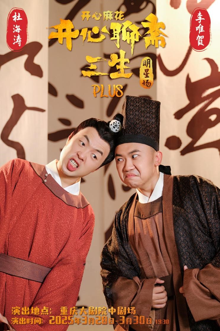 杜海涛的加盟无疑为《开心聊斋·三生PLUS》增添了更多看点。他以综艺节目中的幽默形象深入人心,此次跨界舞台剧,展现了其作为演员的多面才华。而李唯贺作为开心麻花的功勋演员,凭借扎实的表演功底和丰富的舞台经验,为剧情注入了更多层次感。两位演员的精彩碰撞,将每一个包袱都演绎得淋漓尽致,让现场笑声不断,掌声雷动。
