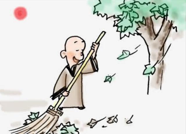 当来到寺里的时候,四处张望,却并没有发现佛印在何处。环顾一圈,只瞧见有一个小和尚在那里低着头,认真地做着扫地的活儿呢。