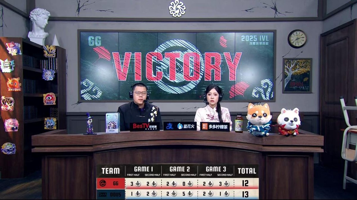 最终,成都GG以2胜0平1负(12:13)的比分击败DOU5,获得本场比赛的胜利。