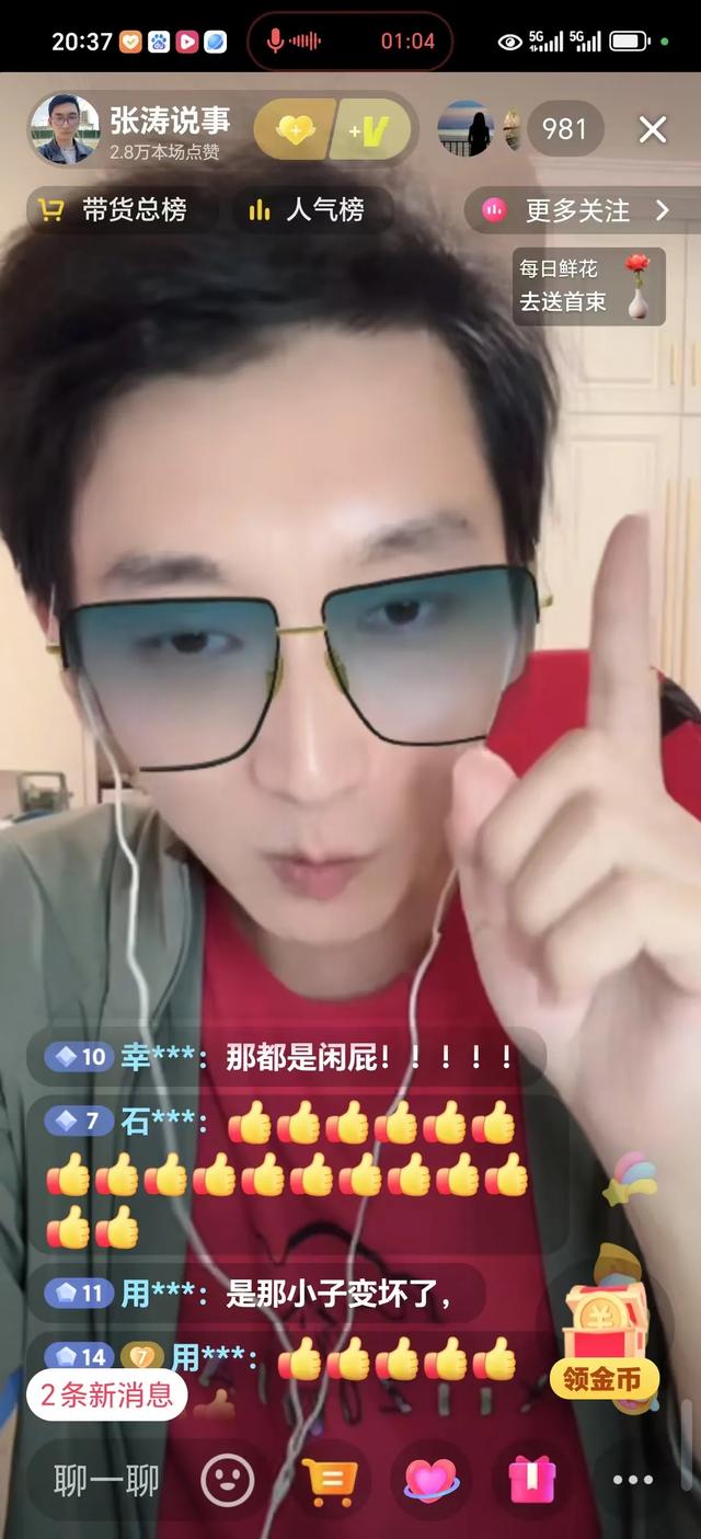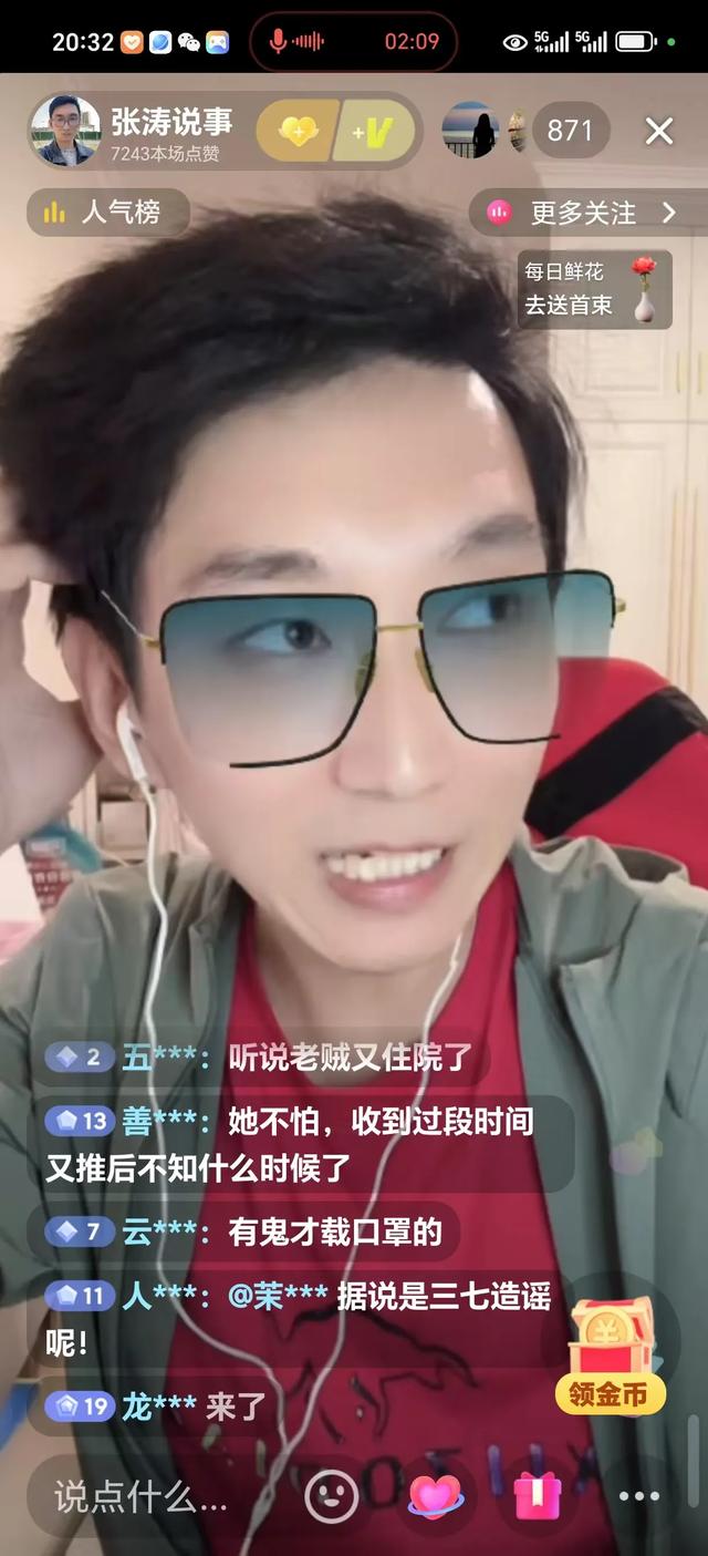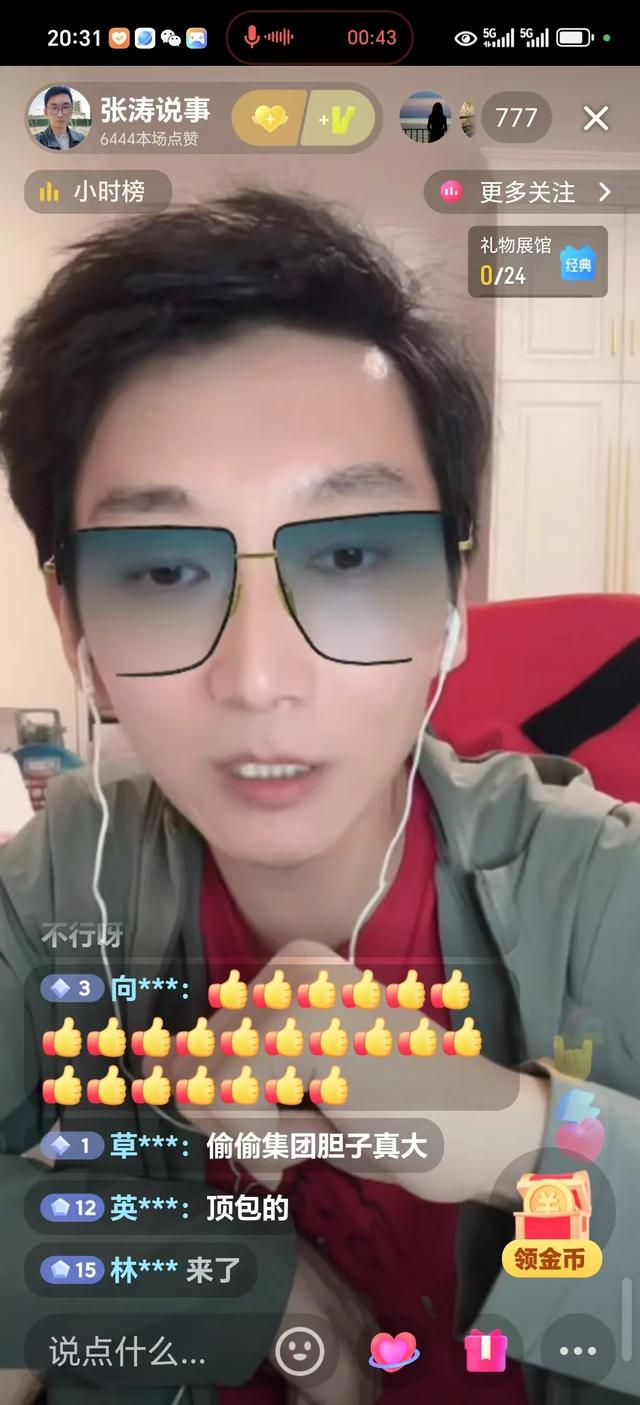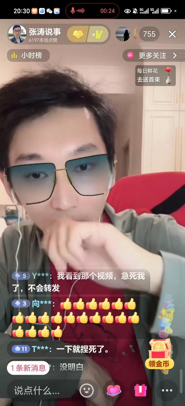 屏幕上打出“造谣”。张涛说:你问问咱这边姐姐们谁相信?你问一下咱这边姐姐们谁会相信这个东西?没有人会去相信!可我就只能说,说出这句话的时候,他应该是没动脑子!就是有点可笑!说出来这话有点可笑!你就当是三岁小孩,不用理会他。