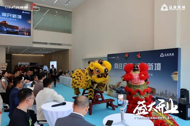 致辞环节结束后,精彩的舞狮表演如期上演。两头雄狮灵动起舞,引得现场嘉宾纷纷驻足观赏。在激昂的锣鼓声中,礼仪人员邀请领导上台为雄狮点睛,寓意着广汽传祺深圳福田体验中心未来生意兴隆、蒸蒸日上。随后的采青环节,雄狮采得生菜(寓意“生财”),将现场氛围推向小高潮。