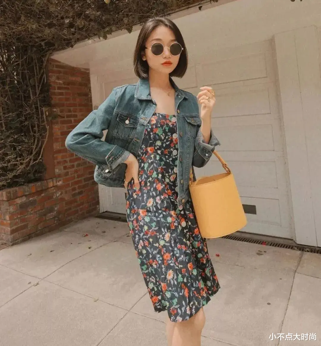 经典的短款牛仔外套搭配复古印花连衣裙,穿出了港风的气质来,很适合小个子,显高又显瘦。牛仔外套的帅气搭配裙子的浪漫风情,整套搭配时尚有调性,气质十足。▼