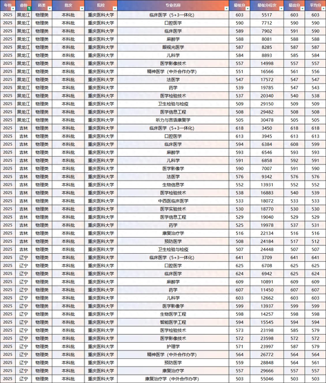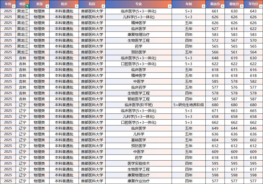 2025年重庆医科、南方医科、首都医科录取分数线-【东三省】