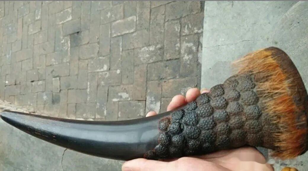 这种仿造品就是拿黑水牛角黏贴上树脂底部,还特地仿造犀角的裙边,还真骗了不少人。