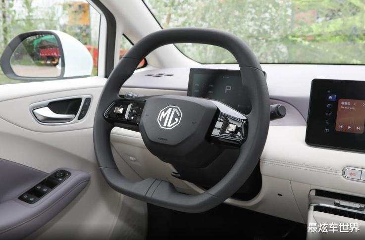 外观方面,新车继承了家族基因,一眼看过去就有很明显的“MG Cyberster”味道。全新的LED透镜大灯和分段式进气格栅相呼应,强化了外形的运动感。前包围两侧导流槽的加持,优化了外形的运动感,同时前脸型面过渡的区域立体感强烈。车身侧面比较吸引眼球的是“长轴短悬”设计,充电口设置在前翼子板侧,搭配传统门把手设计,外加17英寸梅花轮圈搭配,整体的视觉效果并不逊色于大众高尔夫、比亚迪海豚等同级别车型。车尾的设计比较简练,新尾灯组“致敬”MG Cyberster的箭头尾灯造型,点亮以后棱角分明,搭配不规则的扰流板,再次提升了产品的辨识度。