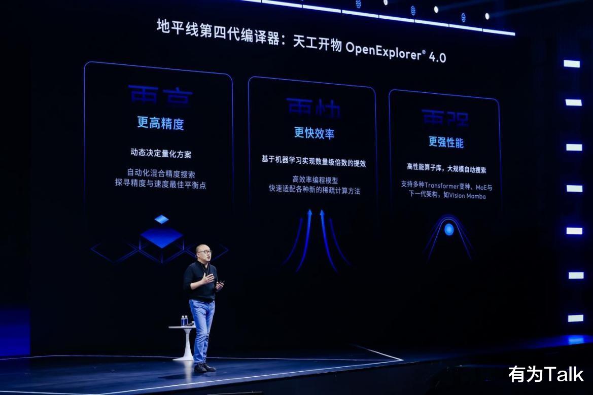 编译器持续进化,全面进入“AI驱动编译”时代。作为交响乐的指挥,地平线的编译器技术同样经历了三代迭代。本次发布的第四代编译器天工开物OpenExplorer®4.0,实现了更高精度、更快效率和更强性能的突破,编译速度从小时级提升至分钟级,模型性能提升20%。其革命性在于引入了AI驱动的优化策略,标志着编译器技术从工具自动化,迈向了基于机器学习的自我进化新时代。