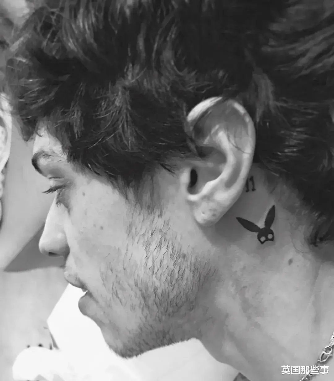 又照着A妹《Dangerous Woman》专辑封面上佩戴的配饰,在耳朵后面纹了黑色兔耳朵面具。