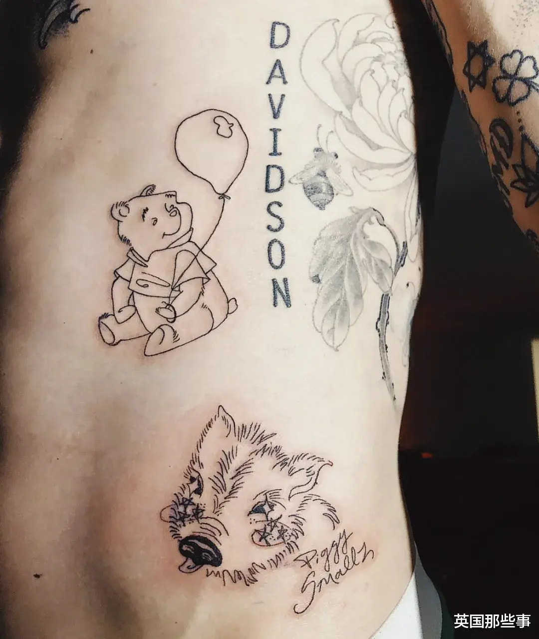 除了为前任们纹的纹身,他多年来还积累了几十个其他的纹身,全身上下总共70多个…