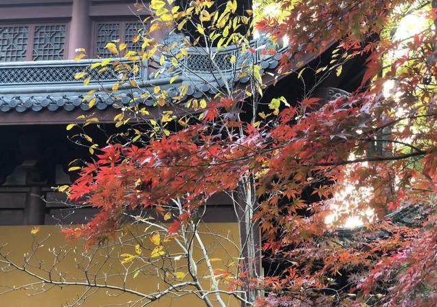 古香禅院【三圣宝殿】,整个庭院古木参天,有着众多枫树和底蕴,目前红绿交接,五彩斑斓!