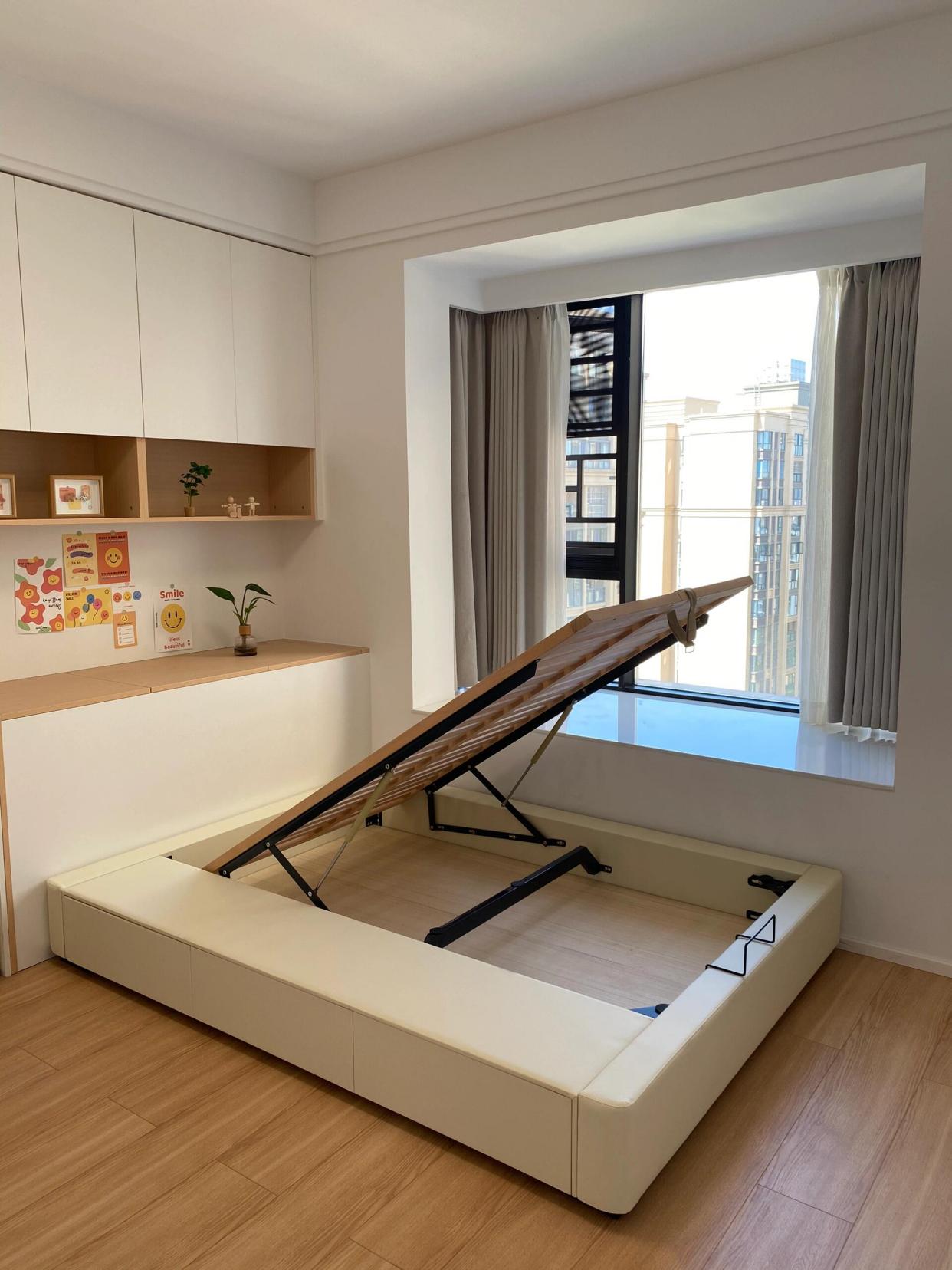 所以,还不如选箱体排骨架储物床,床尾上翻式的液压杆助力,拿东西可轻松操作。
