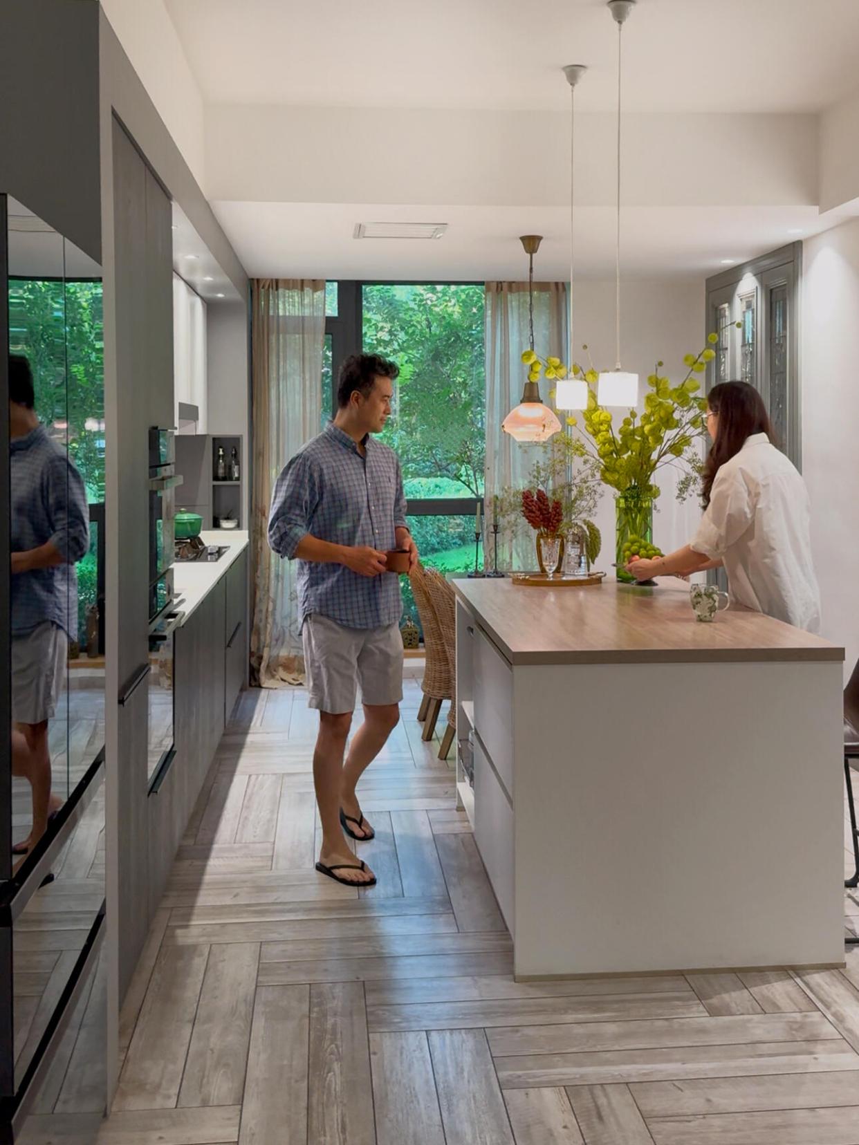 但强行在中国家庭加入岛台,硬凹造型难用且难看。很多人装修前脑补,装了它,家里有如偶像剧里一般精致高端,自己变成烘焙达人,和家人围在岛台前烤蛋糕。