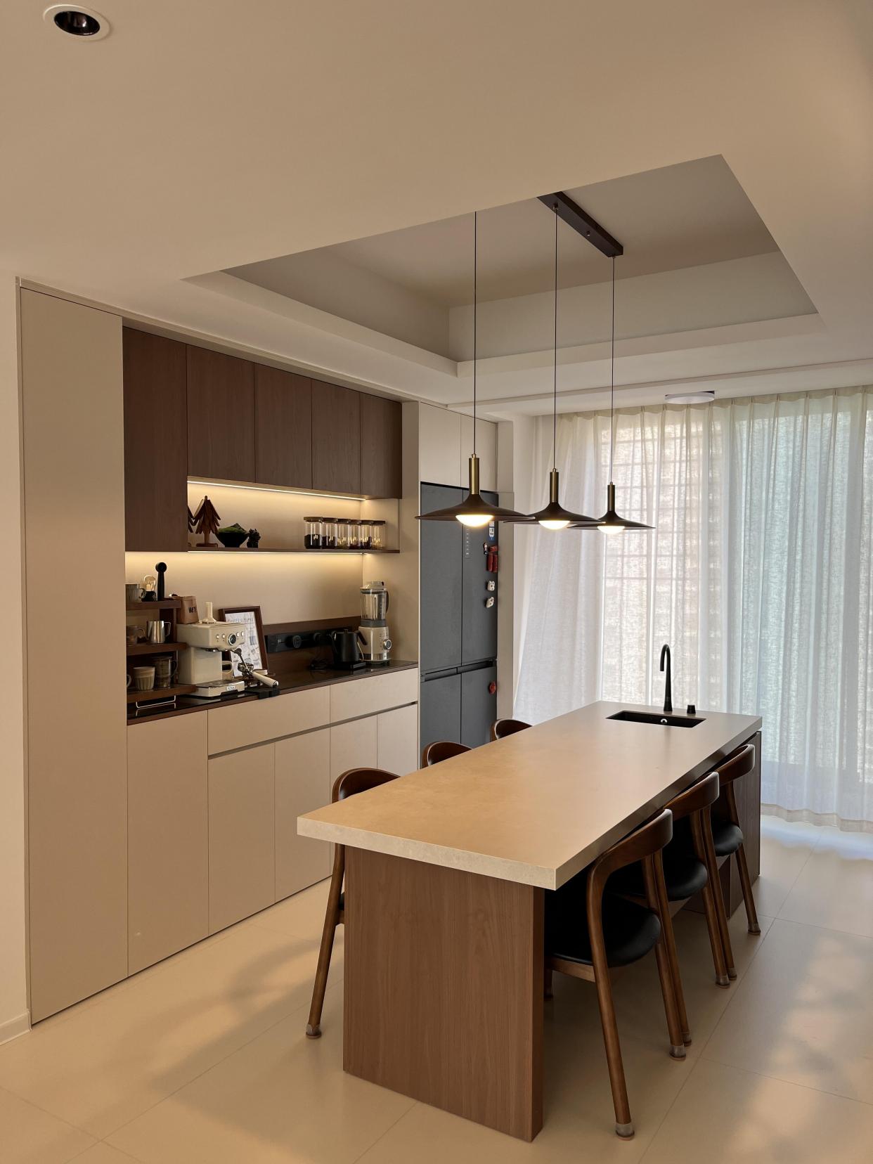 尤其是一高一低做成餐岛一体的,平平的一个大餐桌不大气吗?