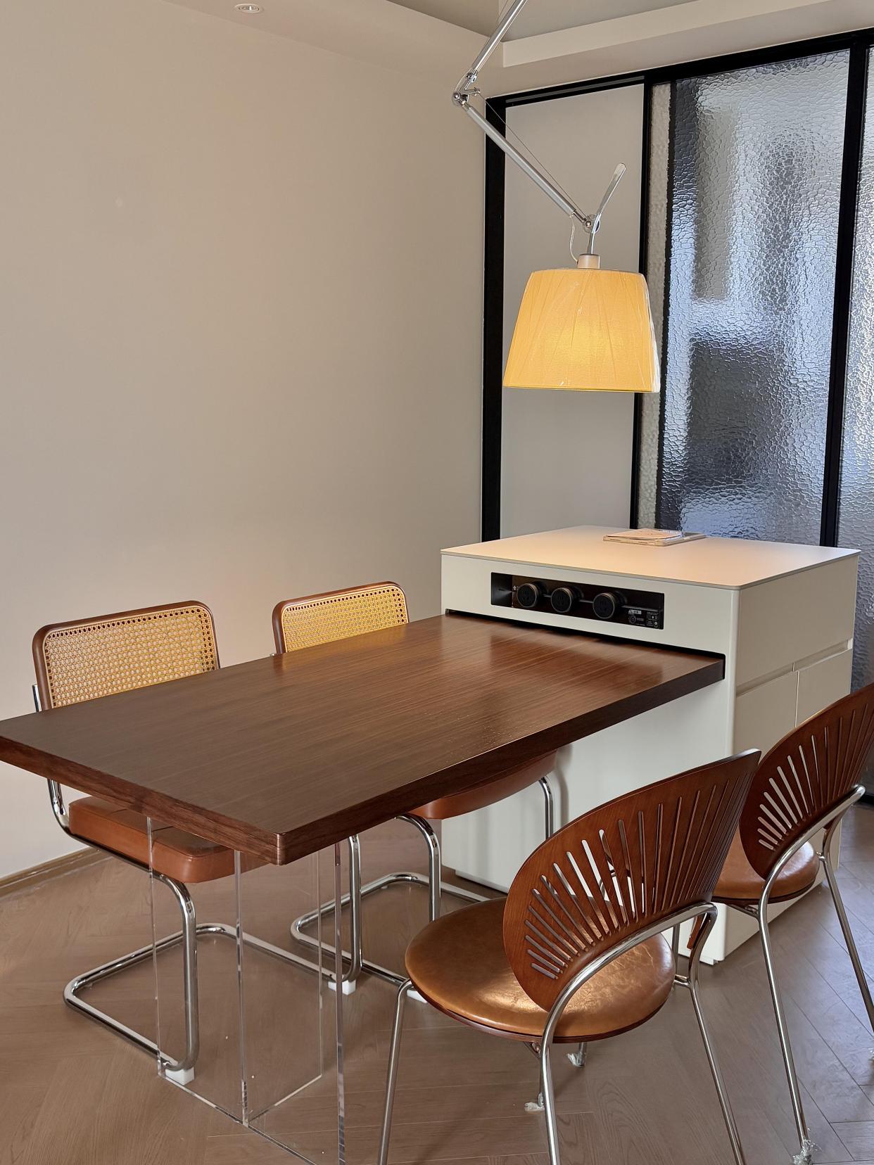 而且很多户型面积有限,并不适合单独做一个岛台,就只能岛台餐桌两用了,这样餐桌的整体性没了,操作和用餐在一起拥挤还显乱,整体也不美观。