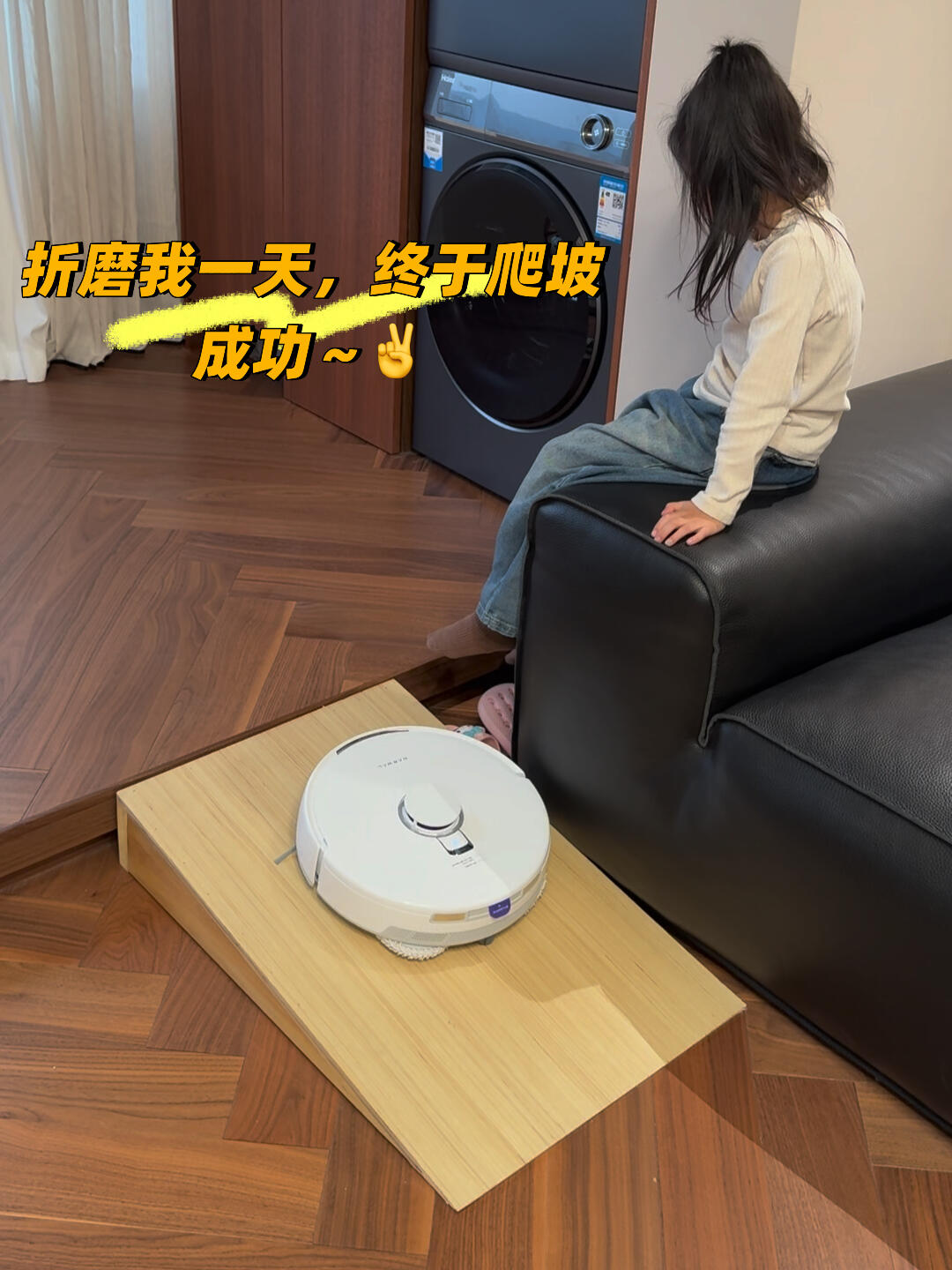 如果安装扫地机器人,你得定制一个丑东西回来让它爬坡,不然它上不去,你就得自己清洁打扫。