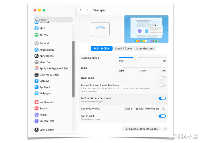 8️⃣ 触控板设置,如果你在用 MacBook 或者外接了 Magic Trackpad,先把追踪速度调到自己顺手的节奏,然后把“轻点来点按”打开,这样点一下就算点击,比按下去更顺手,我个人觉得轻点更自然,触控板的感觉调好了工作会舒服很多。