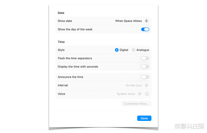 4️⃣ 菜单栏显示星期和日期,点菜单栏的时间设置,把日期和星期也显示出来,我一般选“总是”或“空间允许时显示”,这样看时间只要往右上角瞄一眼就够了,比去桌面挂个小组件更省事。